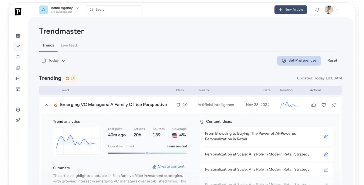 This is our specialty! Many experts struggle with "expert's block" - knowing so much that it's hard to know where to start. Our TrendMaster feature identifies hot topics in your industry, and our AI interviews draw out your unique perspectives on these subjects. We help you uncover the valuable insights you already possess.