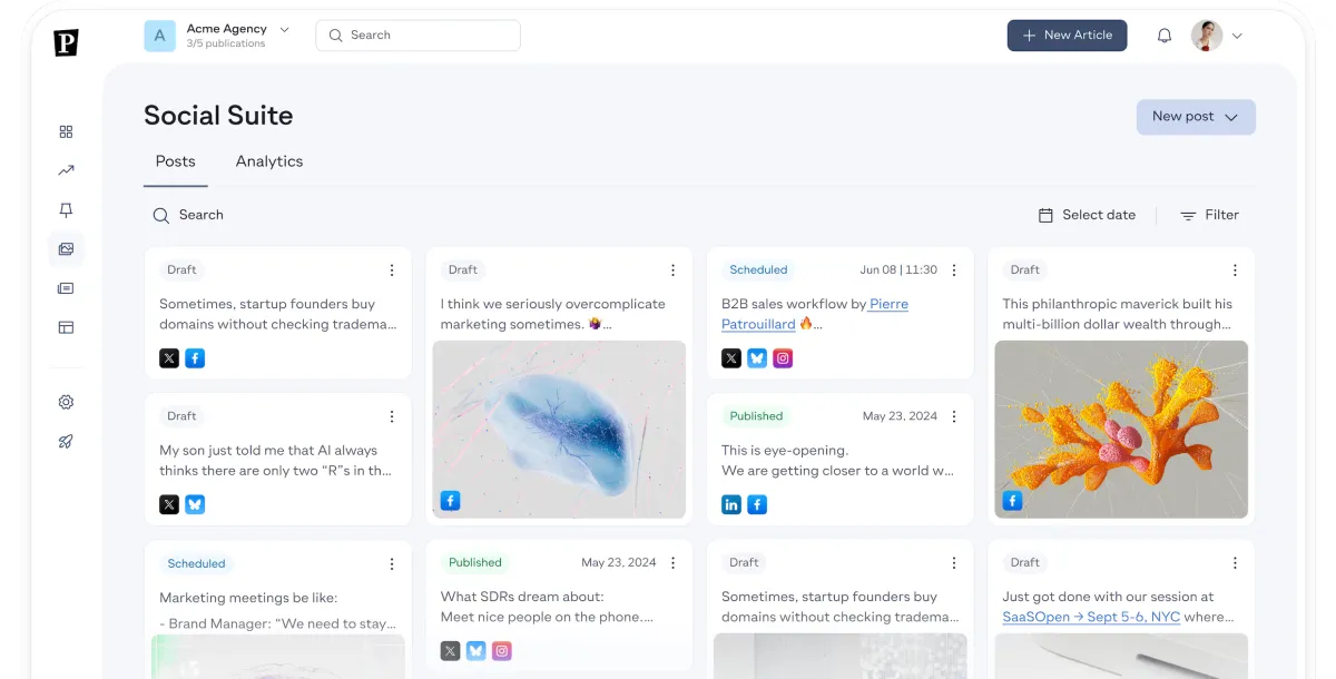 Your approved content is sent to our Master Calendar for scheduling. With one final click, the system delivers the content directly and natively to your blog, LinkedIn, X/Twitter, and all connected channels.